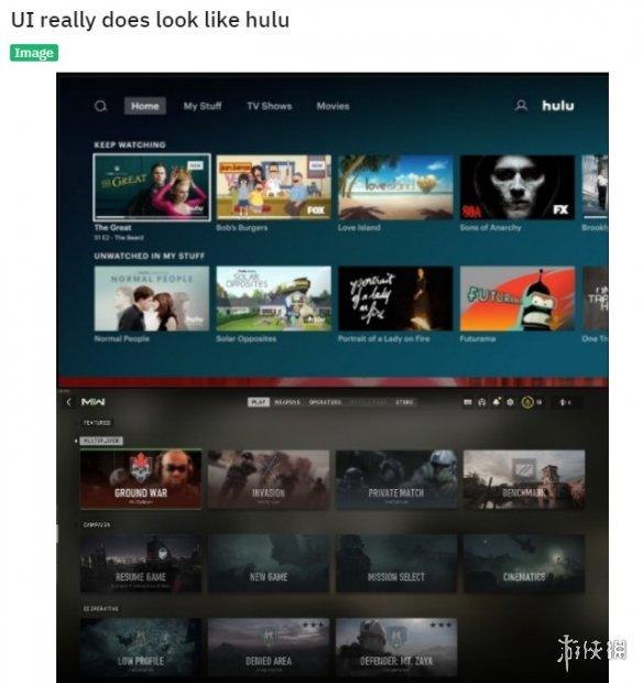 《使命召唤19:现代战争2》已正式发售,其中游戏的UI相比以往《使命召唤》有了很大变化,但并不好看,因此被受玩家抨击。Reddit用户335iJB4发现《使命召唤:现代战争2》的UI居然与流媒体网站Hulu的几乎一致,对比图如下: