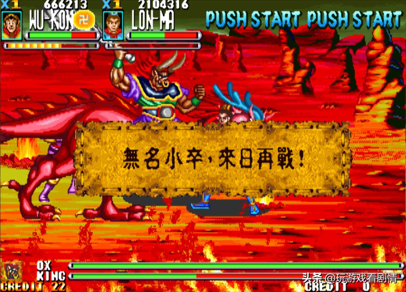 击败了火龙以后,《西游释厄传》和《西游释厄传SUPER》的游戏结局并不相同。