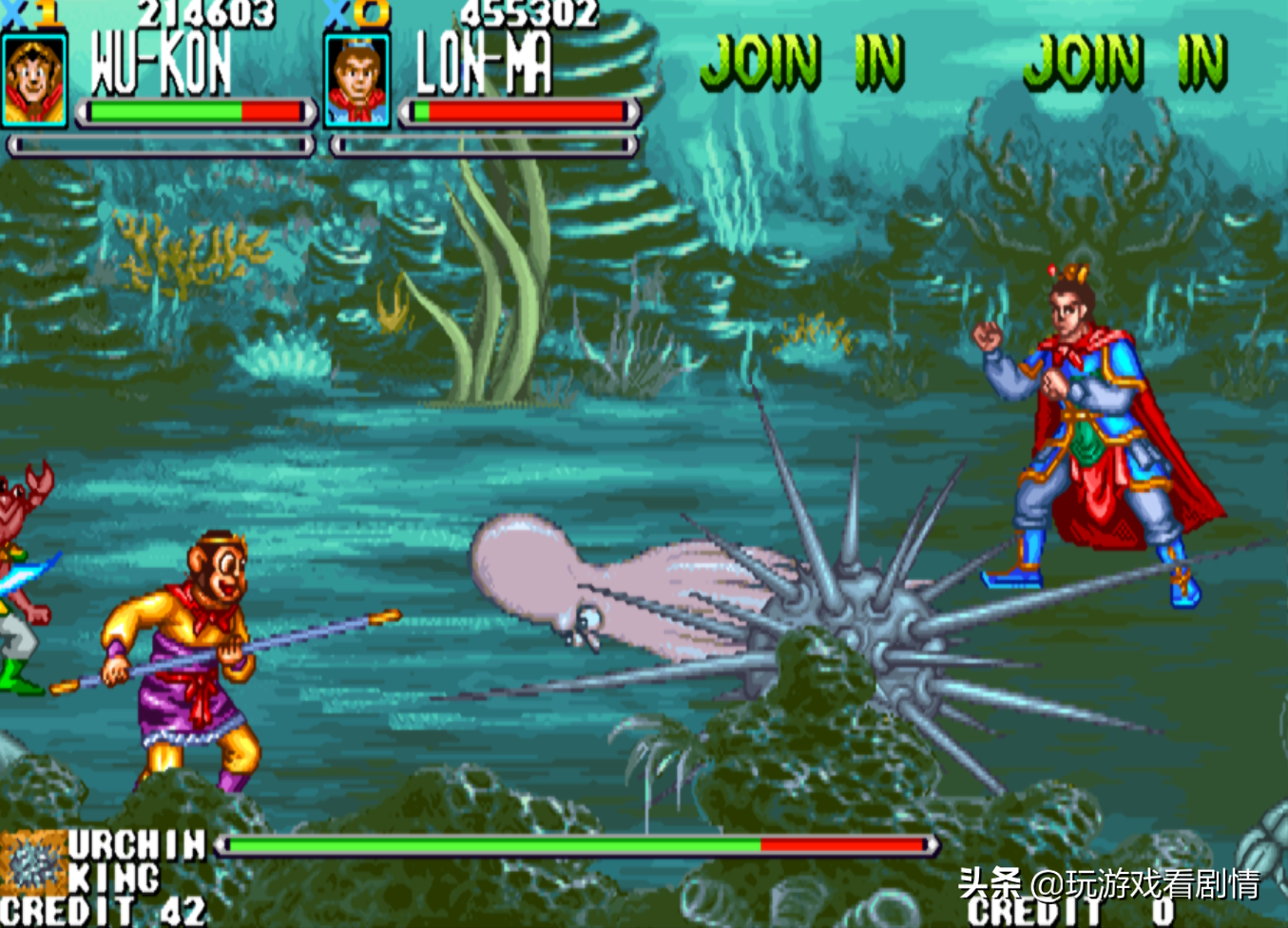 于是,孙悟空等人立刻来到了水底,在打败了无数的虾兵蟹将后,见到了他们的小头目“海胆王”。