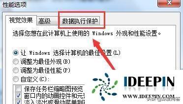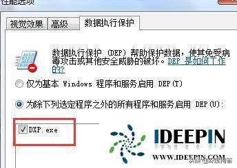 5、去掉勾选“为除下列选定程序之外的所有程序和服务启动dep”。