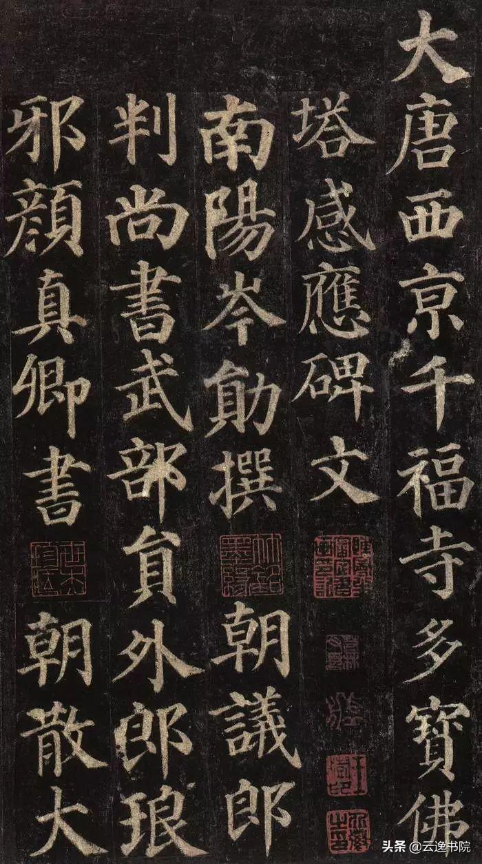 颜真卿《多宝塔碑》,是唐天宝十一年(752年)由当时的文人岑勋撰文、书法家徐浩题额、书法家颜真卿书丹、碑刻家史华刻石而成的经典楷书作品。