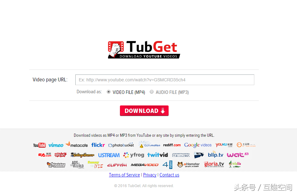 TubGet是一个免费的在线视频下载和转换器,支持YouTube等主流视频网站,而且可以选择视频大小、画质、支持AVI、MOV、MP4、FLV等格式下载,很实用。