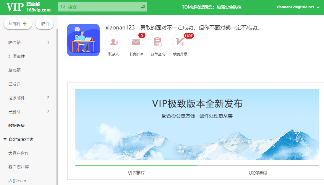 当然我们并不应该被生活所打倒,所以在这个时候我们就需要主动出击去外面开拓客户了,而每到这个时候就需要我们用到mail 了,当然mail是什么意思 相信大部分人都知道,那就是电子邮箱 的意思,在我们出去开拓客户的时候就需要用到mail 来做一次性邮箱 用,那么一次性邮箱注册哪家好你知道吗 ?因为我们需要外出办公,所以拿着电脑就会很不方便,在这时候我们就需要一个手机邮箱了,在经过我们很多次的挑选之后,终于是选择了TOM VIP邮箱 作为我们的工作邮箱来使用,因为他们家邮箱在微信上就可以收发邮件,所以还是很不错的。