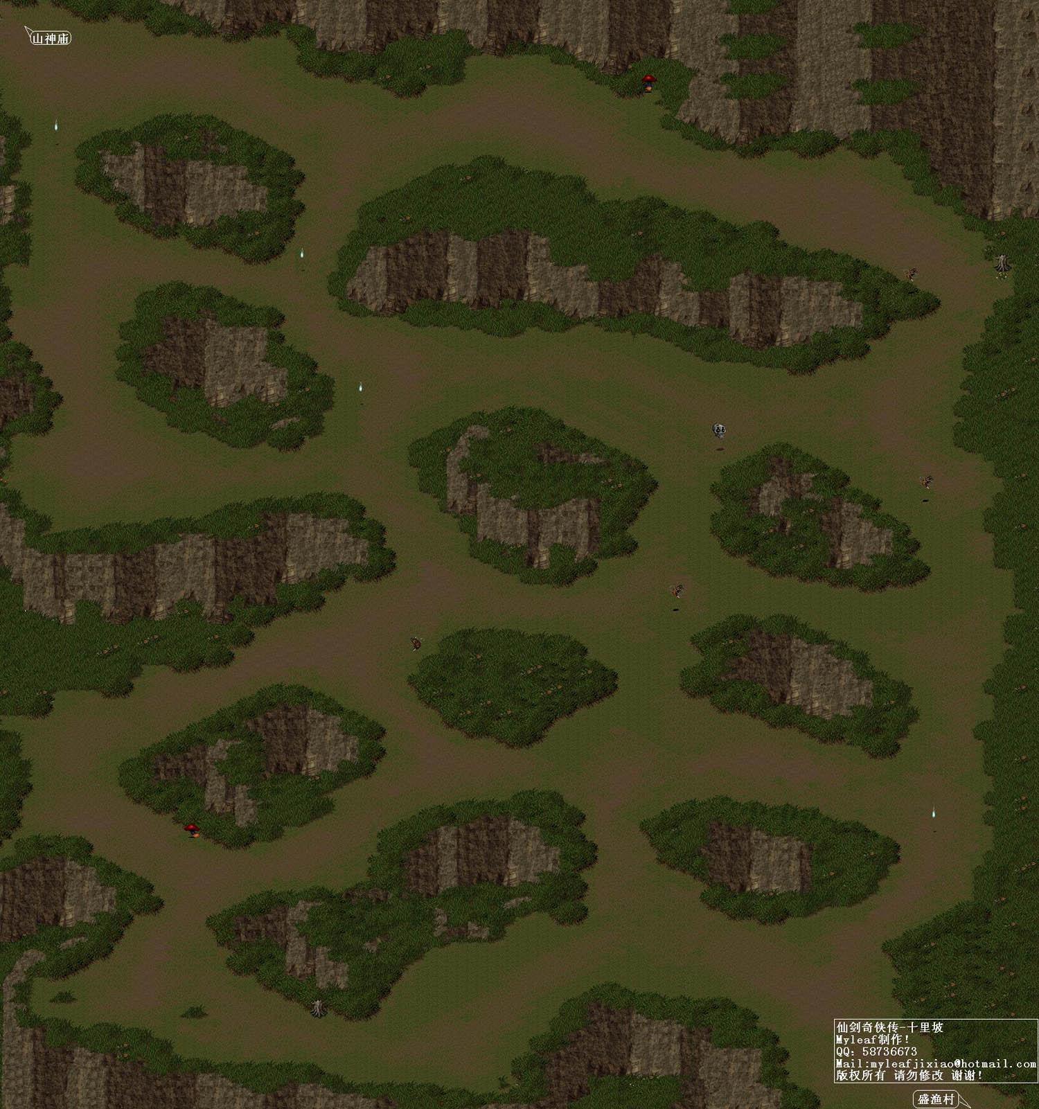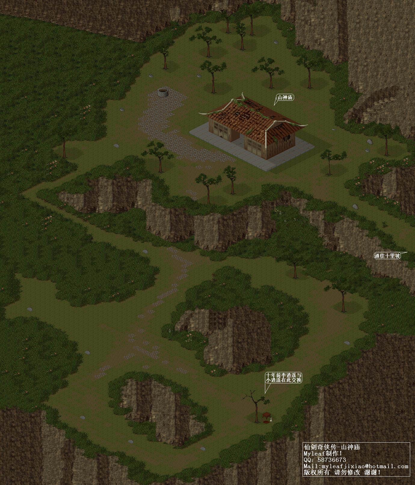 走到山神庙,附上山神庙地图(剧透一下,后期时光回流的时候会遇到小时候的李逍遥):