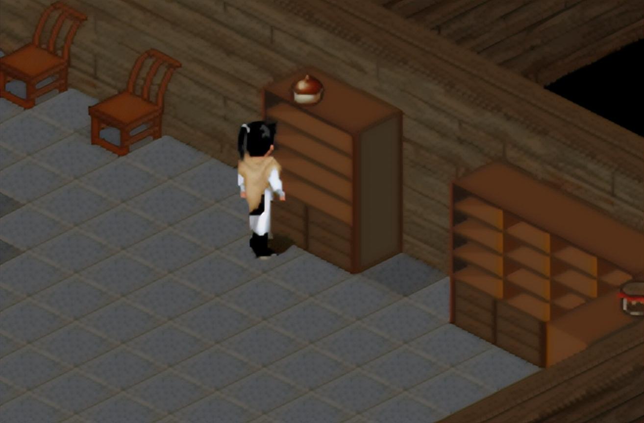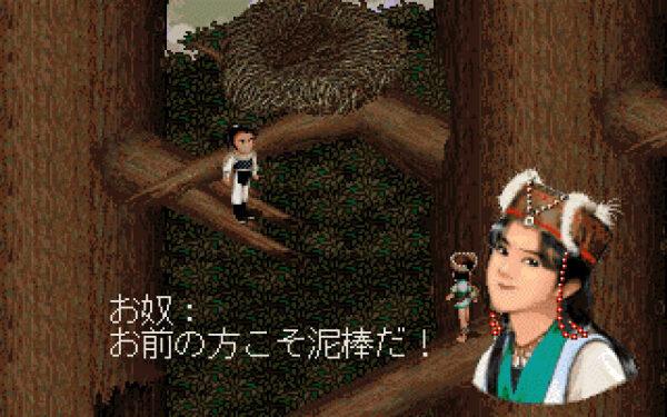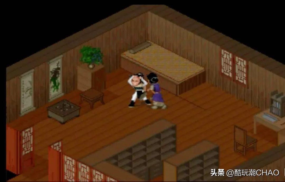 显示器里也是内有乾坤,首先出现在这里的小场景,是李逍遥在大理城白苗圣姑的隐居处,圣姑发现灵儿已有身孕,要小李去找凤凰蛋和麒麟角。好不容易要得到蛋了,却被半路上杀出来的苗女阿奴夺走。也正是在这里,李逍遥初遇了游戏中的三号女主——阿奴。