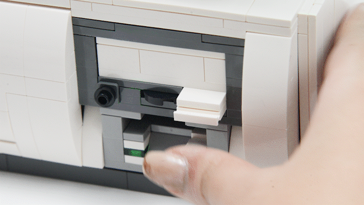 主机箱拼搭结束之后,我们开始显示器的拼搭。这里为了配合卧式机箱的老电脑,显示器用的也是我们以前称为“大屁股”的CRT显示器。后方的板利用机械零件连接,加了两个橡皮筋,看来这里应该是可以自动开合的设计。
