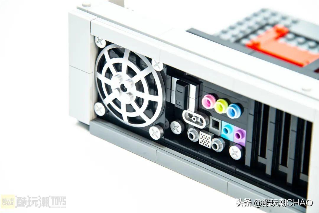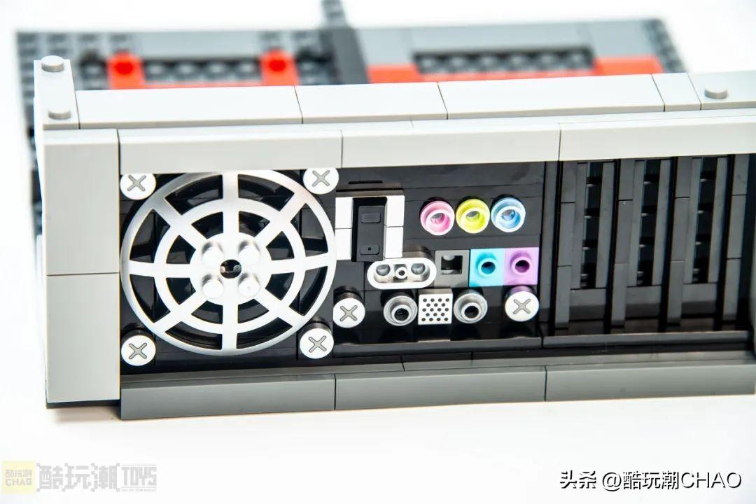 果不其然,底板拼搭完成之后,最先组装的是这台老式电脑的主板接口。主板接口通过不同颜色的零件作为区分,不知道各位80后见过卧式机箱的朋友,还能不能看得出来,这些不同颜色的接口,都是连接哪些设备。