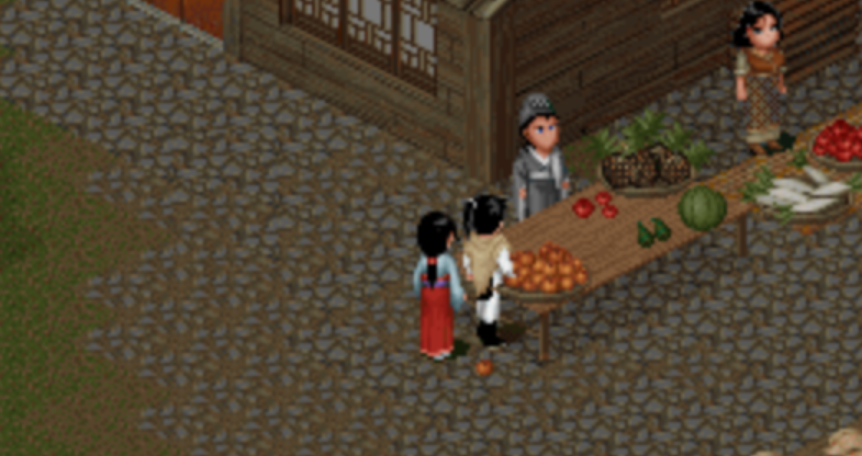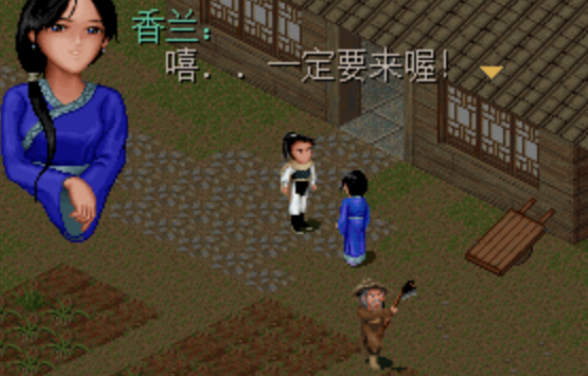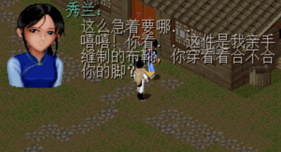 支线剧情:出客栈后先在客栈门口不远处和秀兰对话,之后再和香兰对话,最后和秀兰对话就可以得到秀兰的布鞋!(继续和香兰说话,再找秀兰,会打听到麻袋的事情..)