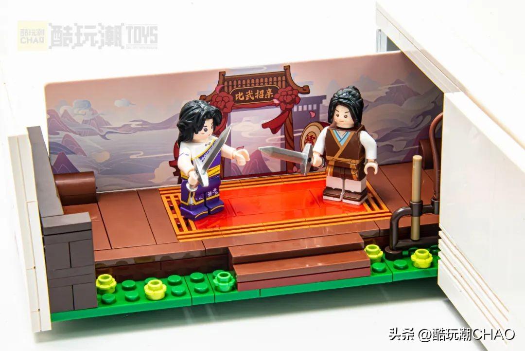 套装里的第一个场景,是发生在游戏第二章的苏州林家堡堡主林天南,为其刁蛮女儿林月如比武招亲设置的擂台。这里的拼搭顺序并没有按照游戏里的进度来进行,游戏中的二号女主角也是在比武招亲之前,在苏州城外和男主李逍遥不打不相识。(画外音:这已经是林月如第五次比武招亲啦~)