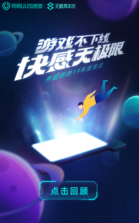 如果你以为活动页面只是用来领取优惠券的就大错特错,在年度回顾活动页面中,UU为每位玩家都总结了专属的“2019游戏人生”。在2019年你最爱玩的三款游戏是什么?你的延迟值到底能打败多少玩家呢?你最长一次连续加速时间是多长?现在只需要打开网易UU加速器PC客户端,或者移动端APP即可参与活动,这一切UU都会告诉你!