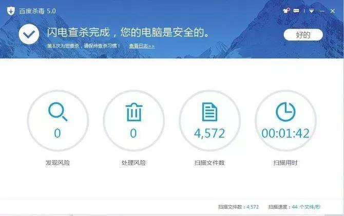 2016年初,百度发布了百度杀毒5.0正式版,表示“安静的,坚守您的电脑安全”。