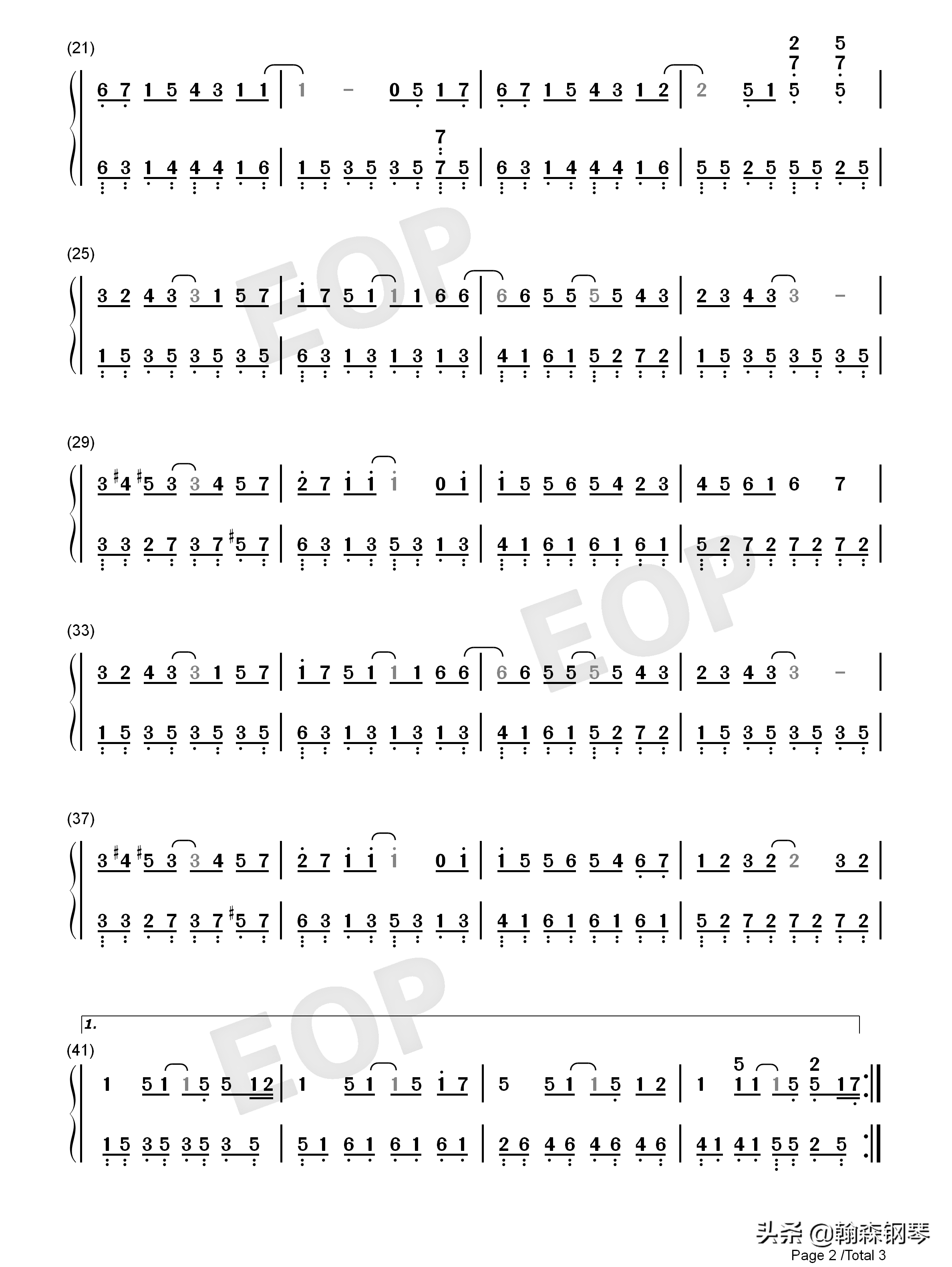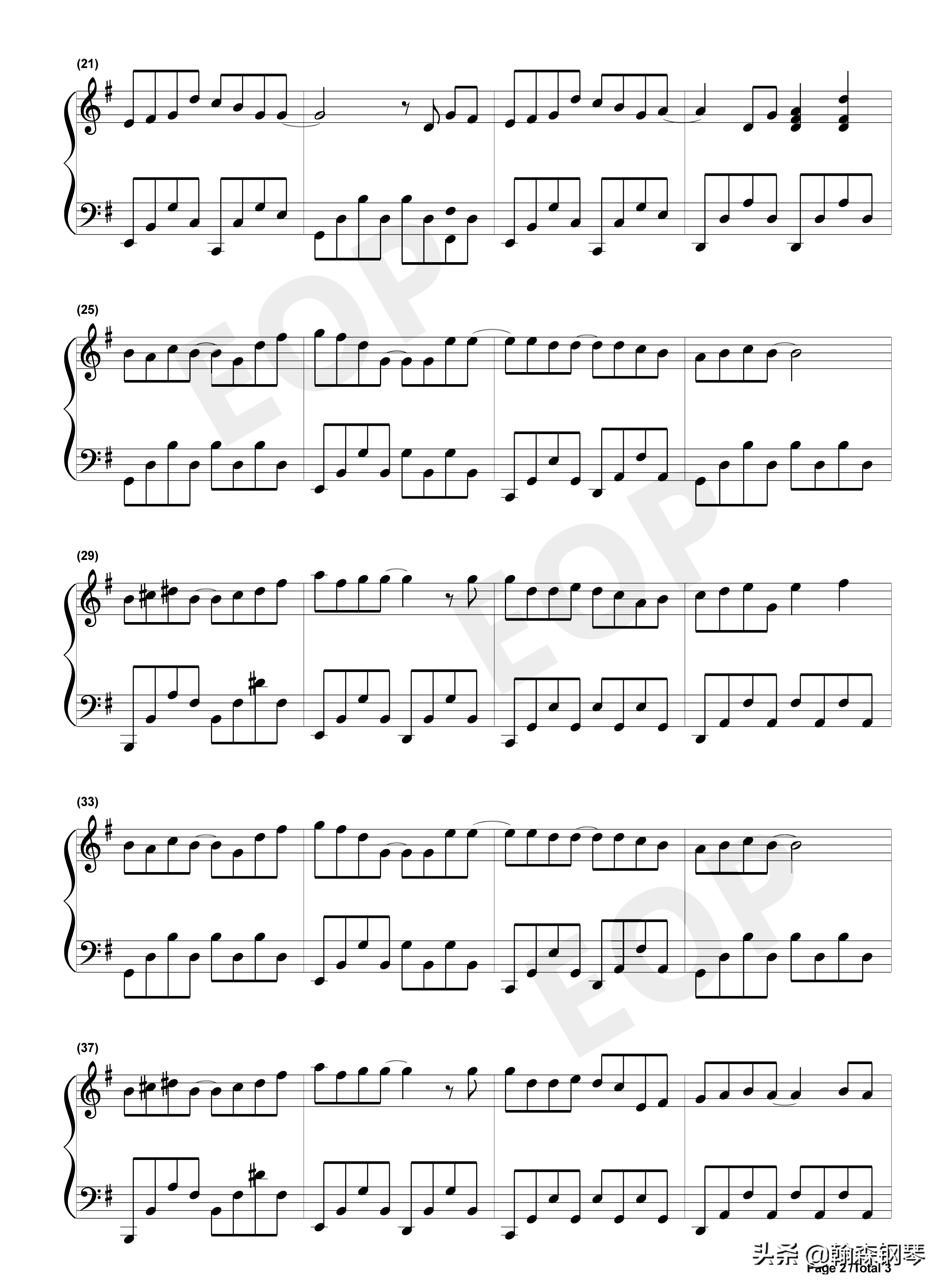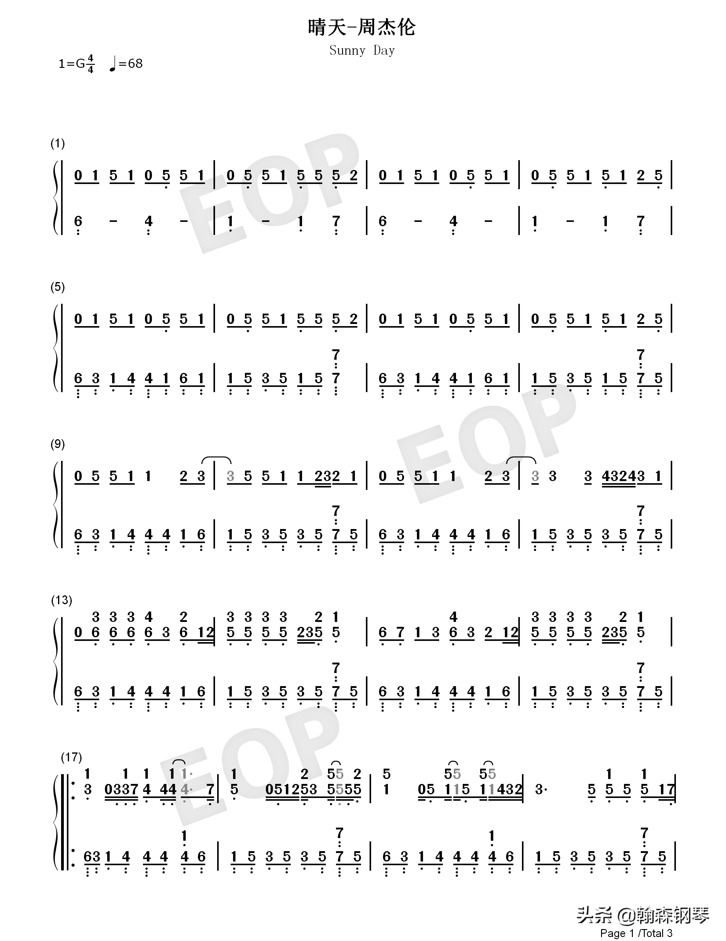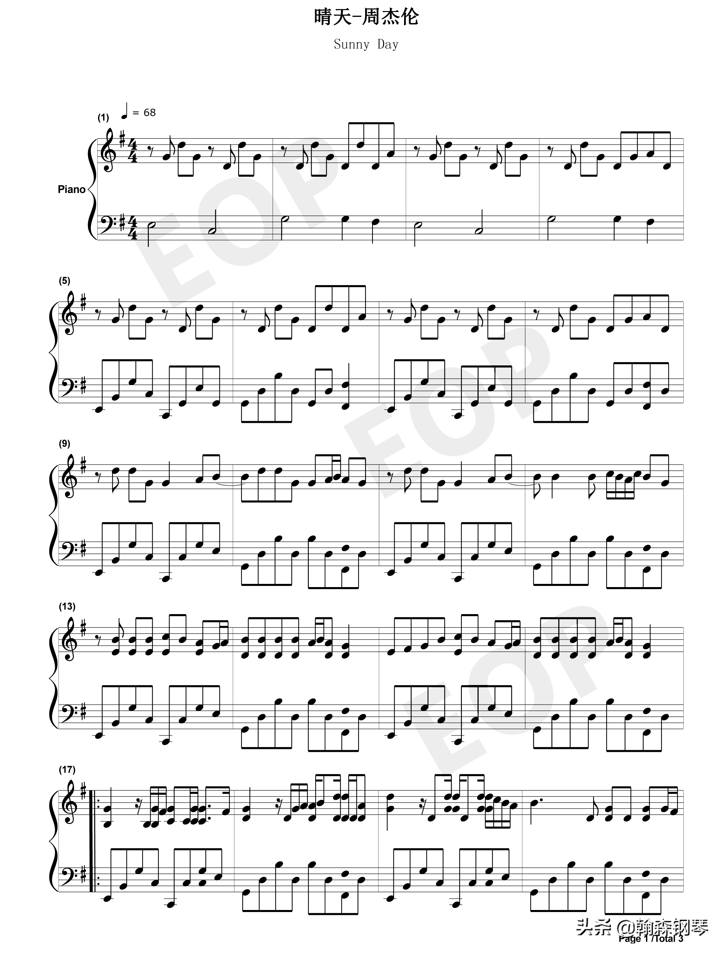 周杰伦 晴天 钢琴谱 五线谱、简谱,双版本:周杰伦《晴天》,收下吧
