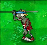 他的锥形路障头盔使他比普通僵尸强壮两倍。强壮度:中等和其他普通僵尸一样,塑料僵尸在路上瞎逛。但是,有什么东西使其停了下来,只见他拣起用作路障的塑料锥,然后把它扣在了头上。——嗯,原来他喜欢参加聚会!~4、撑杆僵尸
