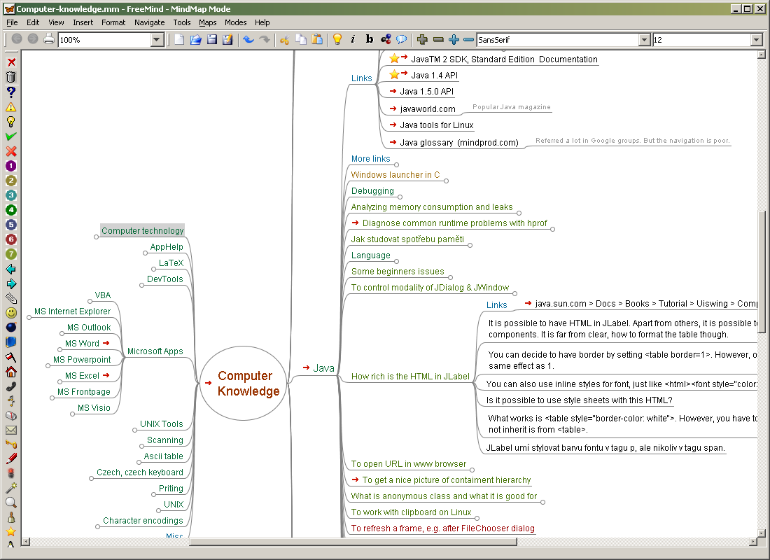 丰富的功能 :FreeMind提供了丰富的功能,包括节点的自定义样式、图标和颜色,以及节点的折叠和展开功能。用户可以使用快捷键和菜单选项来快速完成各种操作。