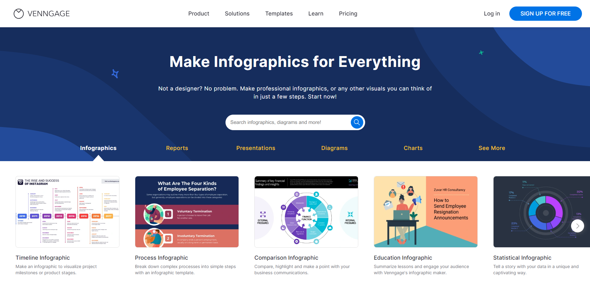 Venngage是一款在线的信息图和报告生成工具,其目标是使得无设计背景的用户也能轻松创建视觉引人的图形。