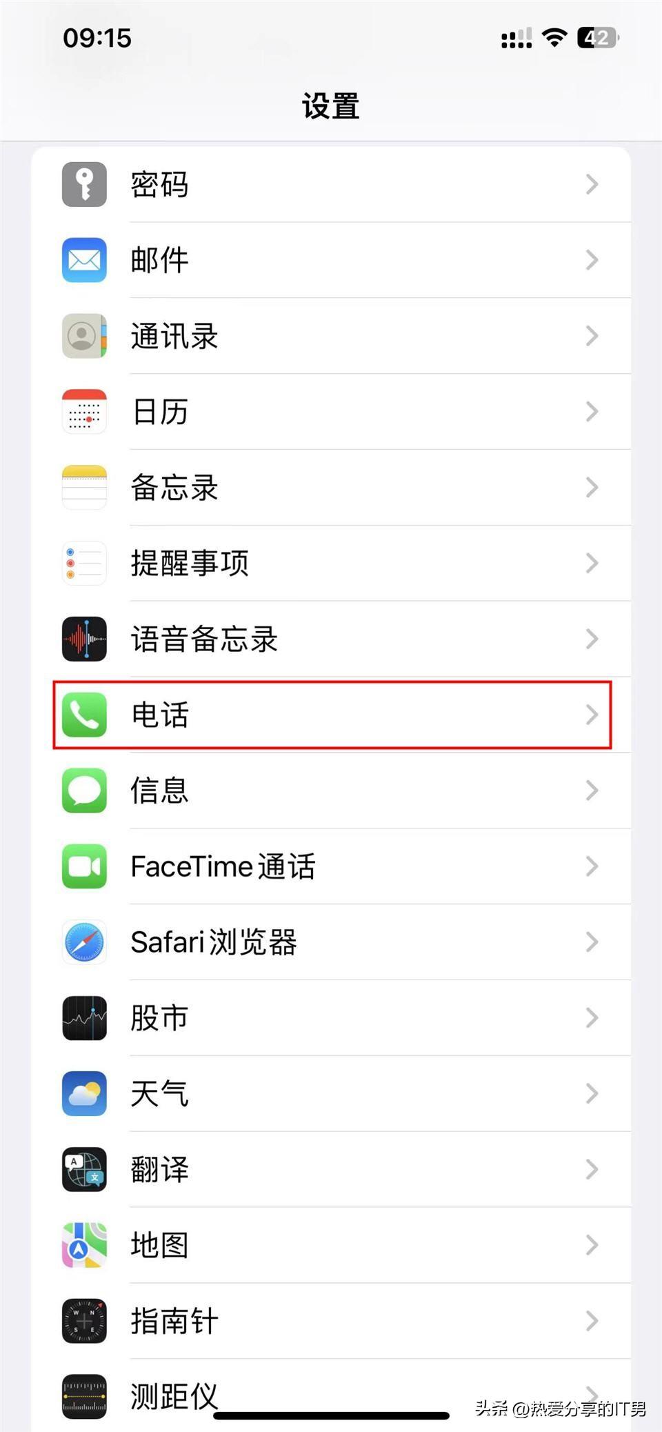 1、轻点主屏幕的 “设置 ” 图标,上滑找到并轻点“电话 ”。