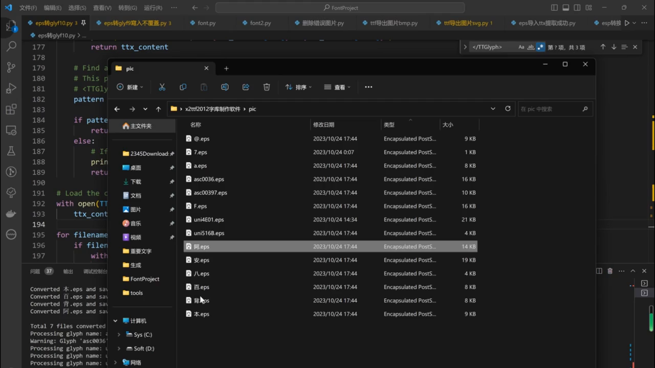 这个软件现在命令行的代码已经全部做完了,但是还需要有一个gi的页面之前图片的格式转换,还有这个自己的扫描膜也已经做完了,结合到最后的这一节可以完整地生存字体。可以做到悬播管和一件事自动化的进行生存自己,就是更方便。