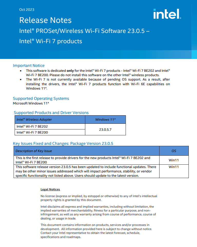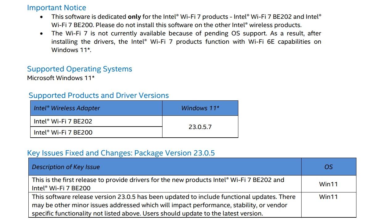 英特尔发布Wi-Fi 7网卡首个Win11驱动,但只有Wi-Fi 6E的功能