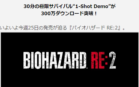 爆款的节奏!卡普空宣布《生化危机2:重制版》体验版下载破300万
