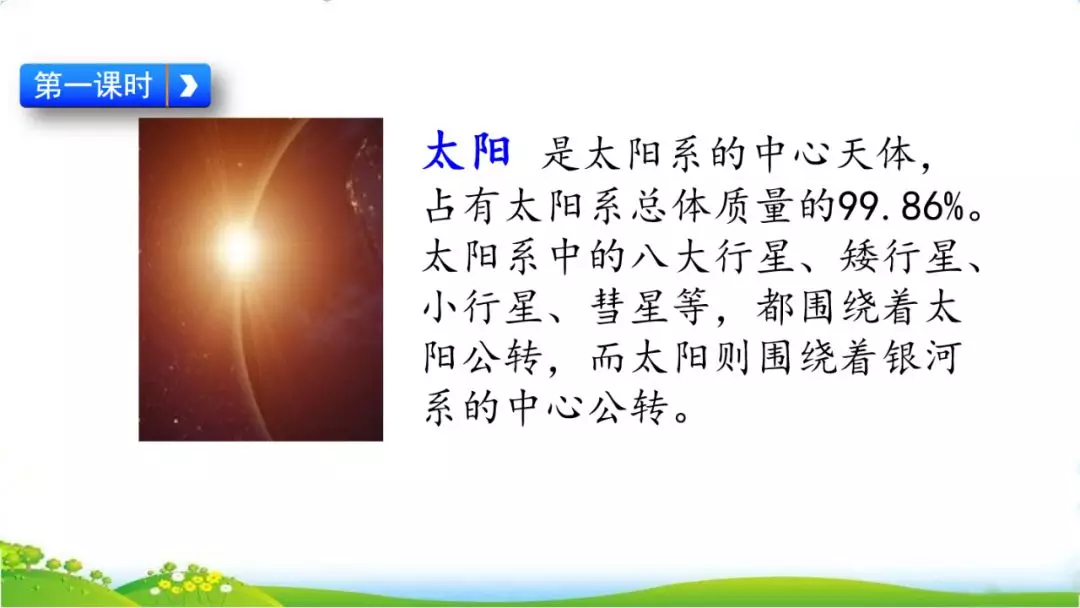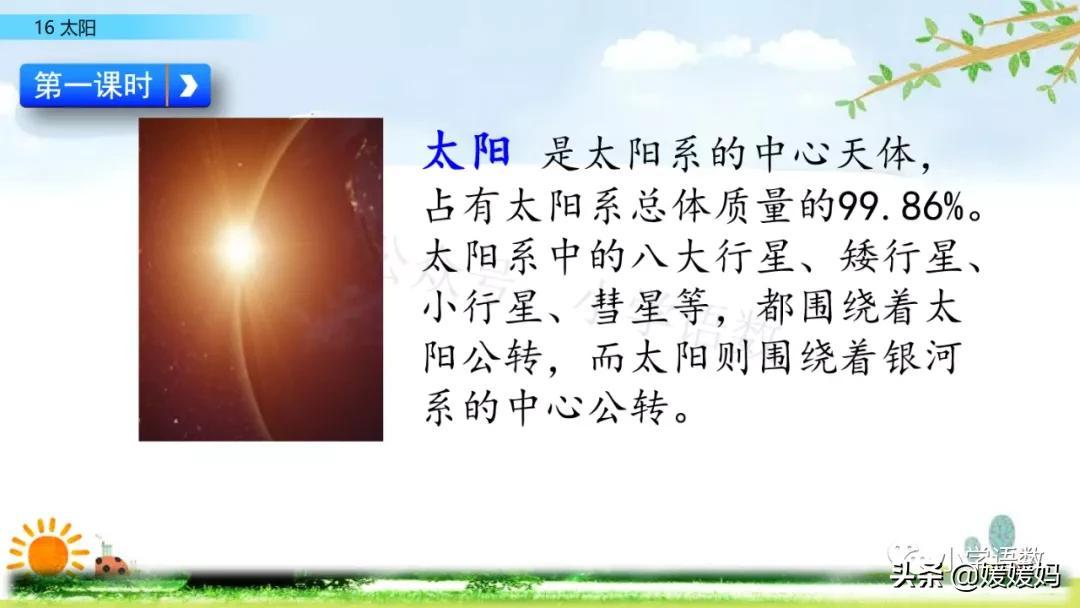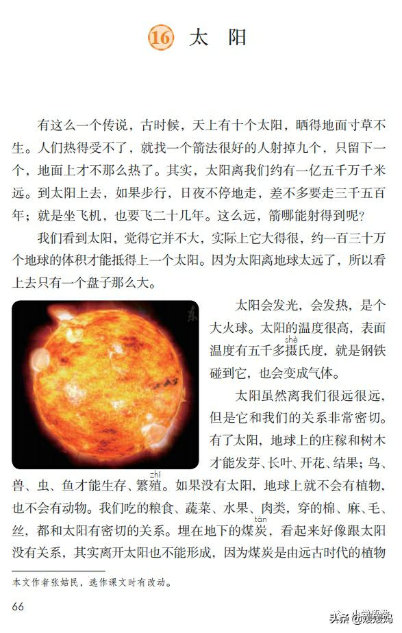 课文配有一幅太阳的实拍图,便于学生结合课文内容了解太阳。