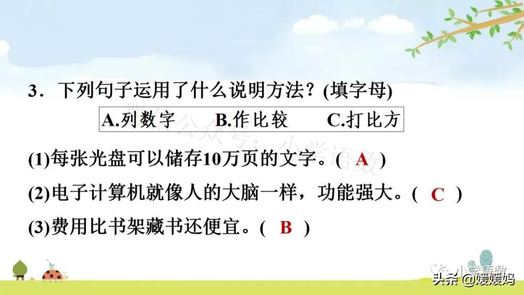 列数字:数字是从数量上说明事物特征或事理的最精确、最科学、最有说服力的依据。使说明更具说服力,让人信服。(公众号:小学语数)