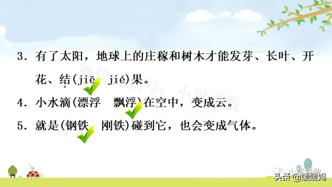 3.其中的水蒸气凝成了无数小水滴,漂浮 在空中,变成云。( )