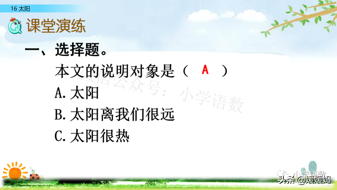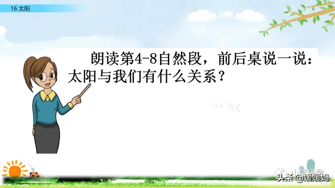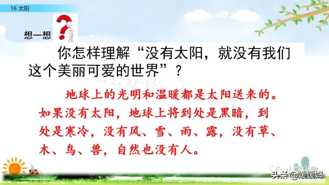 答:没有太阳,就没有我们这个美丽可爱的世界。