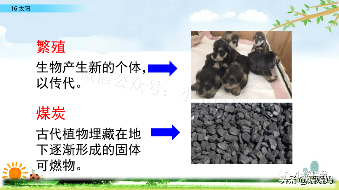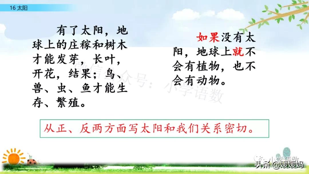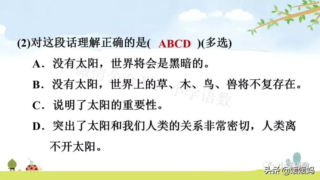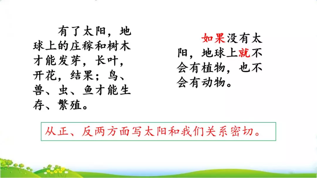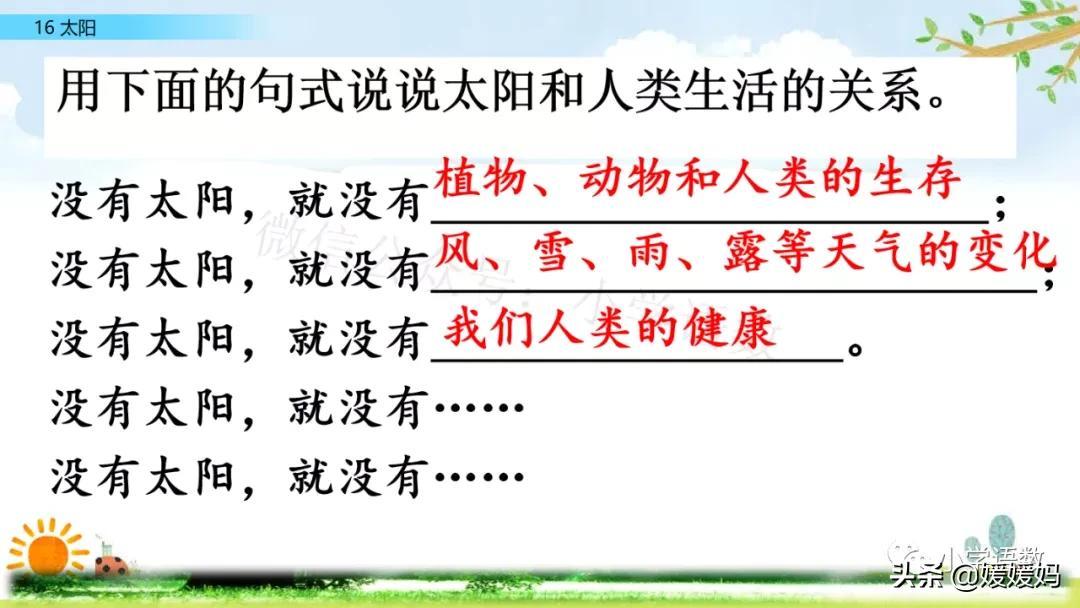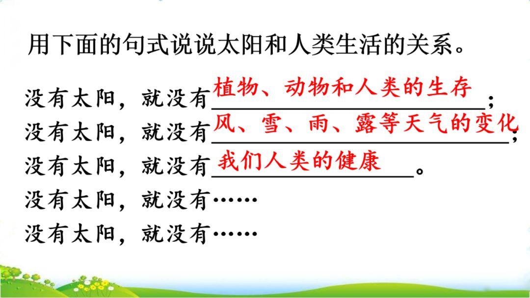 (2)没有太阳,我们就没有吃的穿的,也没有煤炭。