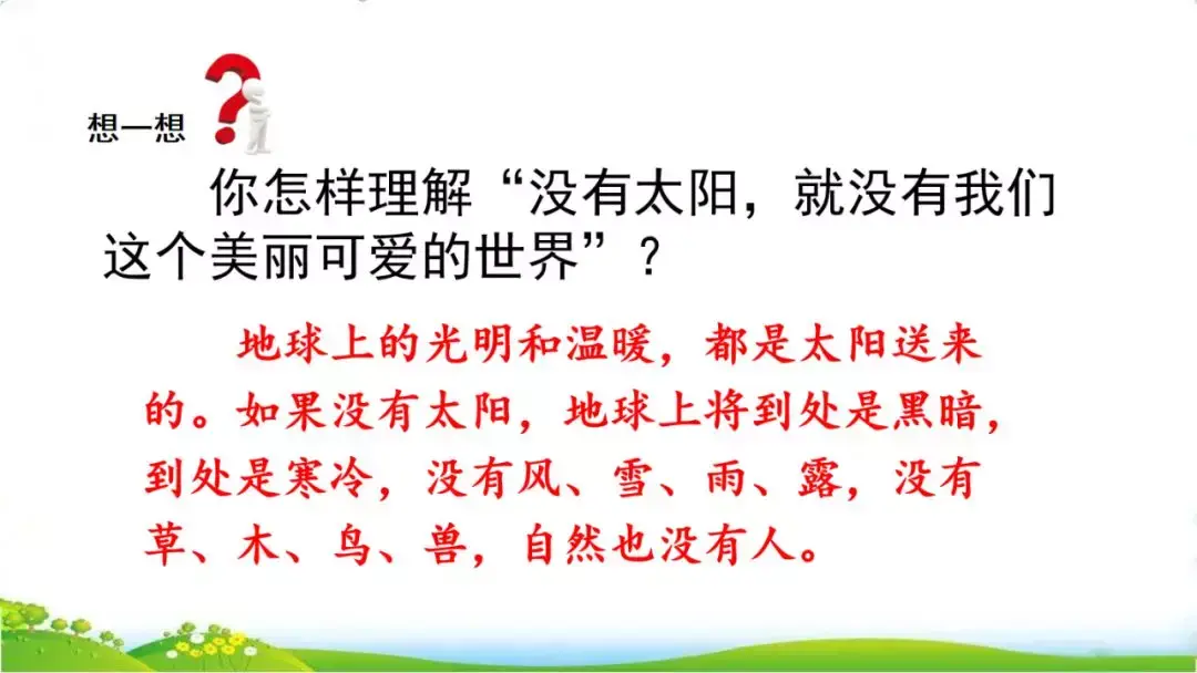 5.你怎样理解“没有太阳,就没有我们这个美丽可爱的世界”?