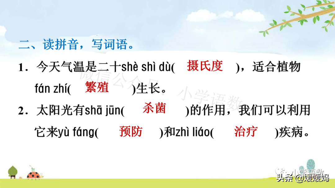 (4)太阳光有杀菌的能力,我们可以利用它来预防和治疗疾病。