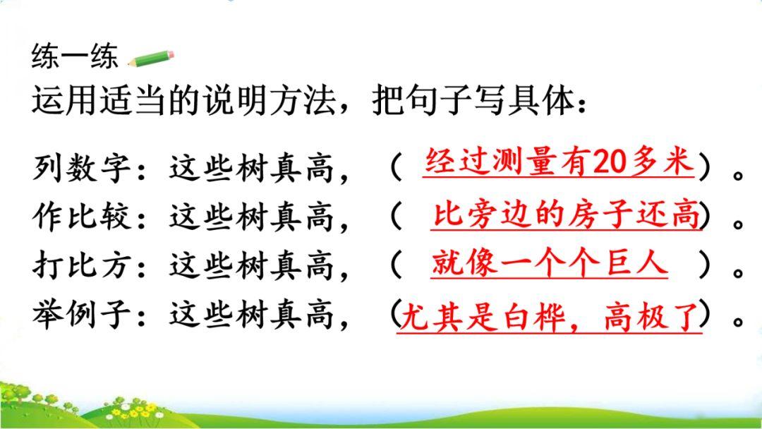主要采用举例子、作比较、列数字、打比方等说明方法。