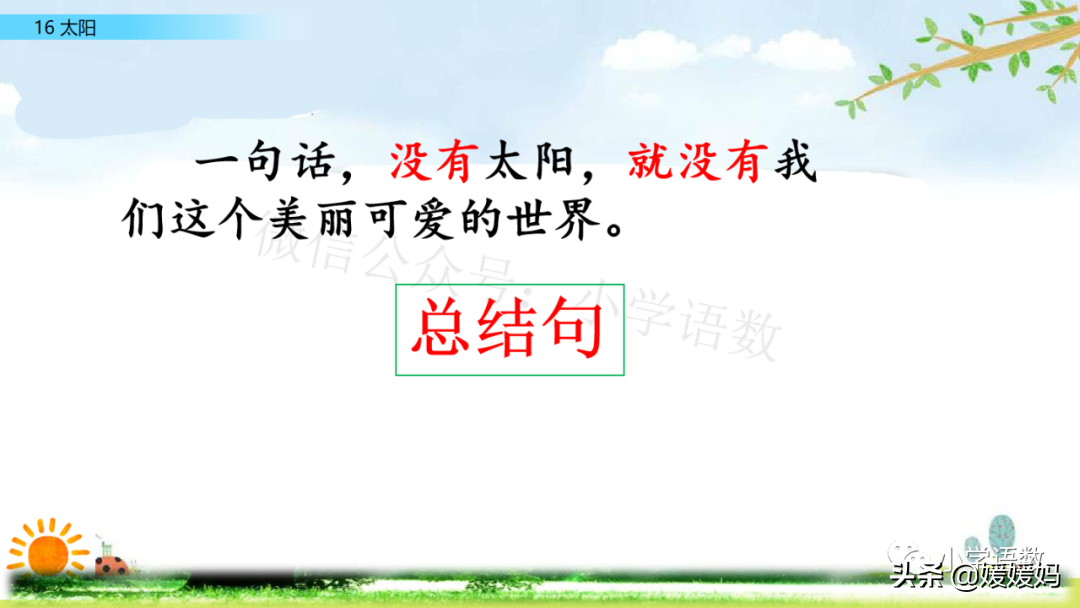 2. 一句话,没有太阳,就没有我们这个美丽可爱的世界。