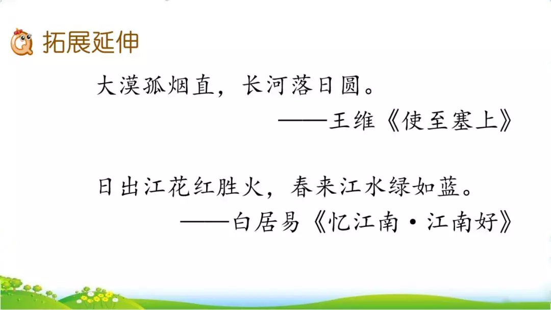 (3)迟日江山丽,春风花草香。——杜甫《绝句》