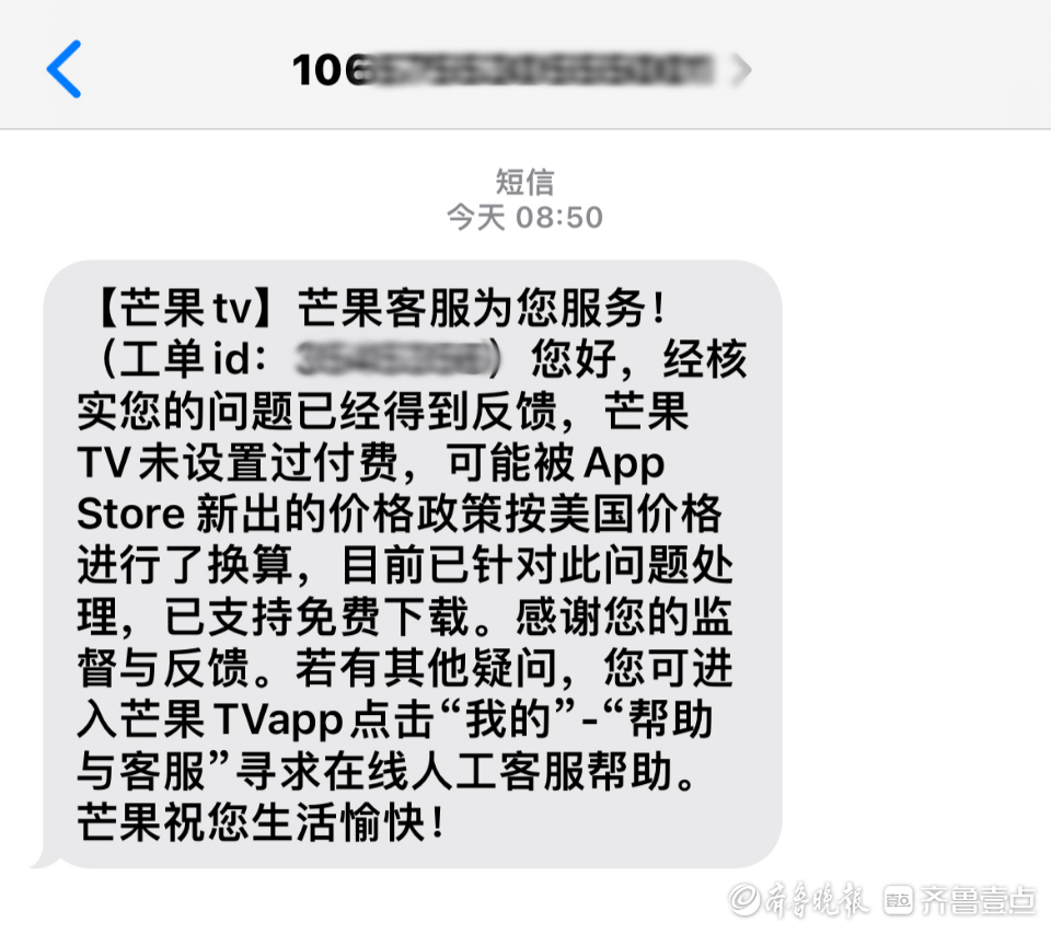 3月17日8时50分,记者收到芒果TV客服发来的短信回复:“经核实您的问题已经得到反馈,芒果TV未设置过付费,可能被App Store新出的价格政策按美国价格进行了换算,目前已针对此问题处理,已支持免费下载。”