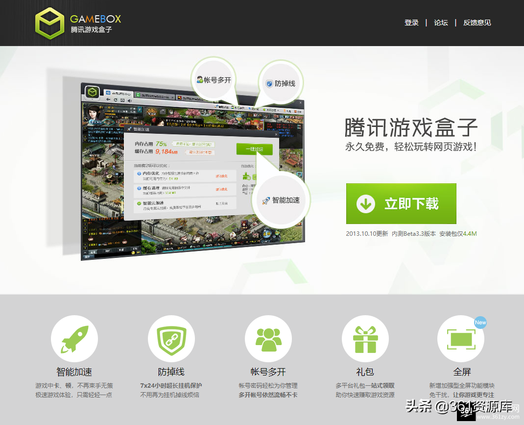 腾讯游戏盒子是由腾讯自主研发的一款专为网页游戏用户定制的网页游戏辅助工具,具有智能加速、防掉线、帐号多开、全屏等特点。