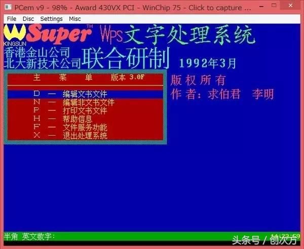 1992 年版本的金山 WPS ,由著名教主求伯君开发: