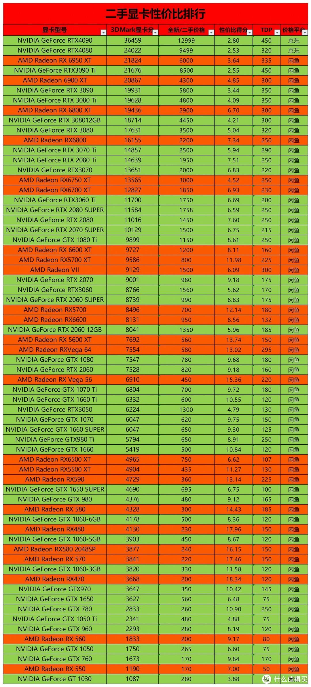 显卡性能排行 22年12月上旬二手显卡性价比排行;双十二显卡购买攻略