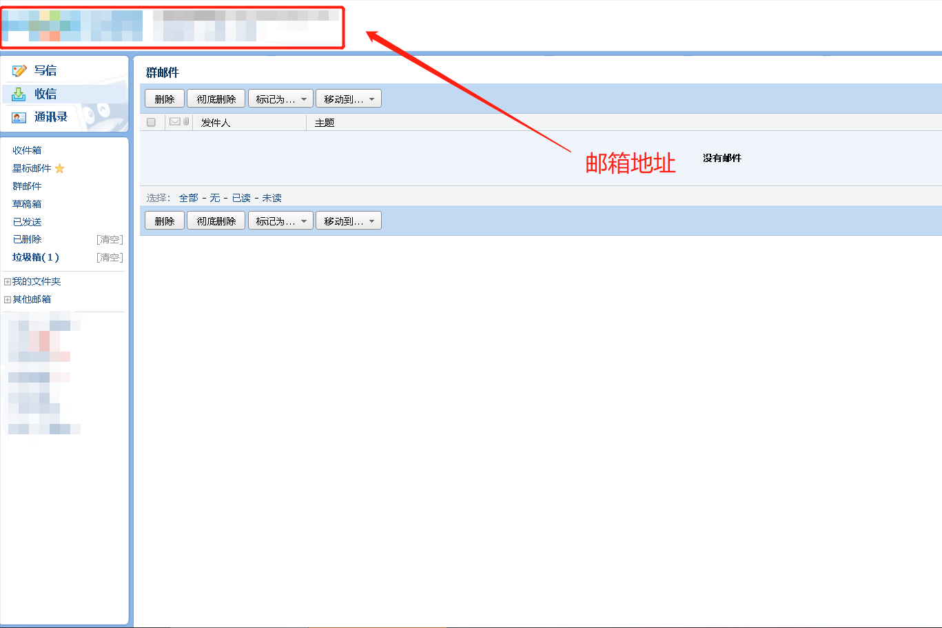 管理界面的最上方会显示邮箱地址,一般以@+网址为结尾。通过左侧的子菜单栏就可以进行写信、收信操作了。