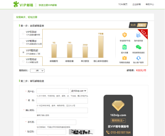 第一大家要知道的就是邮箱用户名是唯一的、不能改变的,它就像是你的名字一样!如果之前有人注册过某个邮箱账号,当你再注册时,是无法注册的!163vip.com是个新域名,上线不到一年,还有很多的用户名可以选择。
