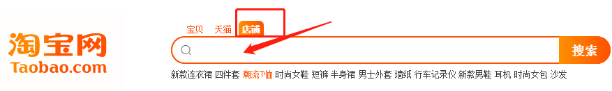 方法二:打开一个淘宝页面,不需要登录也可以。直接在淘宝搜索栏中输入他的ID,把搜索类型改为【店铺】(默认的情况是搜索“宝贝”),再点“搜索”即可。