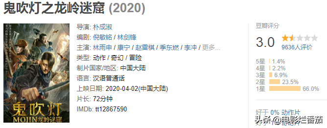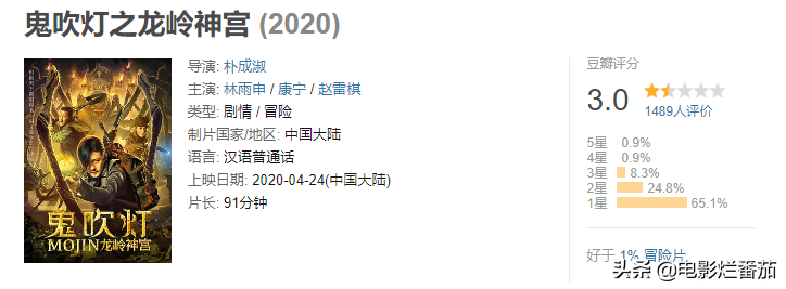 最让人意外的是,这部网大推出的20天后,片方又在另一视频平台推出了续集《鬼吹灯之龙岭神宫》,还是原班人马,还是一样的烂,只是名字变了2个字。