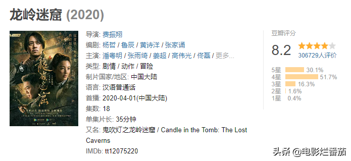 4月2号,这部网大版的《鬼吹灯之龙岭迷窟》就跟着上线了,吃相十分难看,不明真相的群众跑到这部网大下面为潘粤明打call,让人哭笑不得。