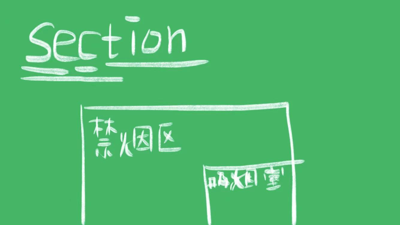 某物的一部分(比如说禁烟区就是non-smoking section),医学专业名词——切口、剖腹产手术,生物专业名词——切片,建筑、地理、工程专业名词——结构的切面图或模型、断面图或模型,切面、剖面、截面。在英式英语 中还可以做动词,指官方强制某个有精神疾病的人留在医院接受治疗,因为他们可能会伤害自己或别人。The rest is non-smoking section.