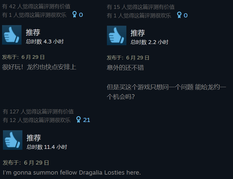 众多玩家不吝于给《乐园的后继者》留言好评,而其中还有不少人提到了Cy旗下的另一款手游《失落的龙约》(简称“龙约”)。