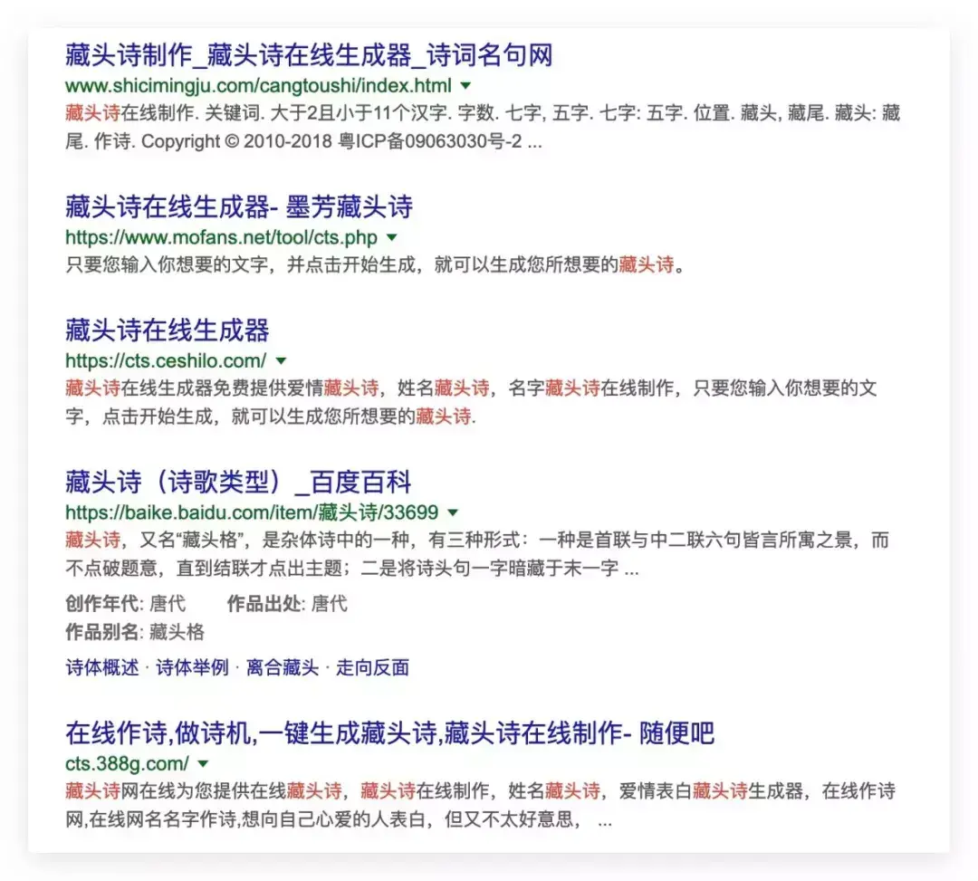 很多人第一次看到这些诗句都大惊「李白真是活神仙」。但真相令人啼笑皆非,他们不过都是用一个叫做藏头诗生成器生成的罢了。