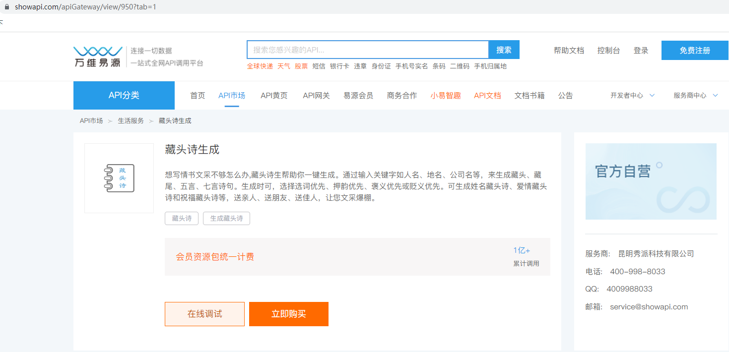 该接口在百度、腾讯、华为、京东数据市场均有上架。