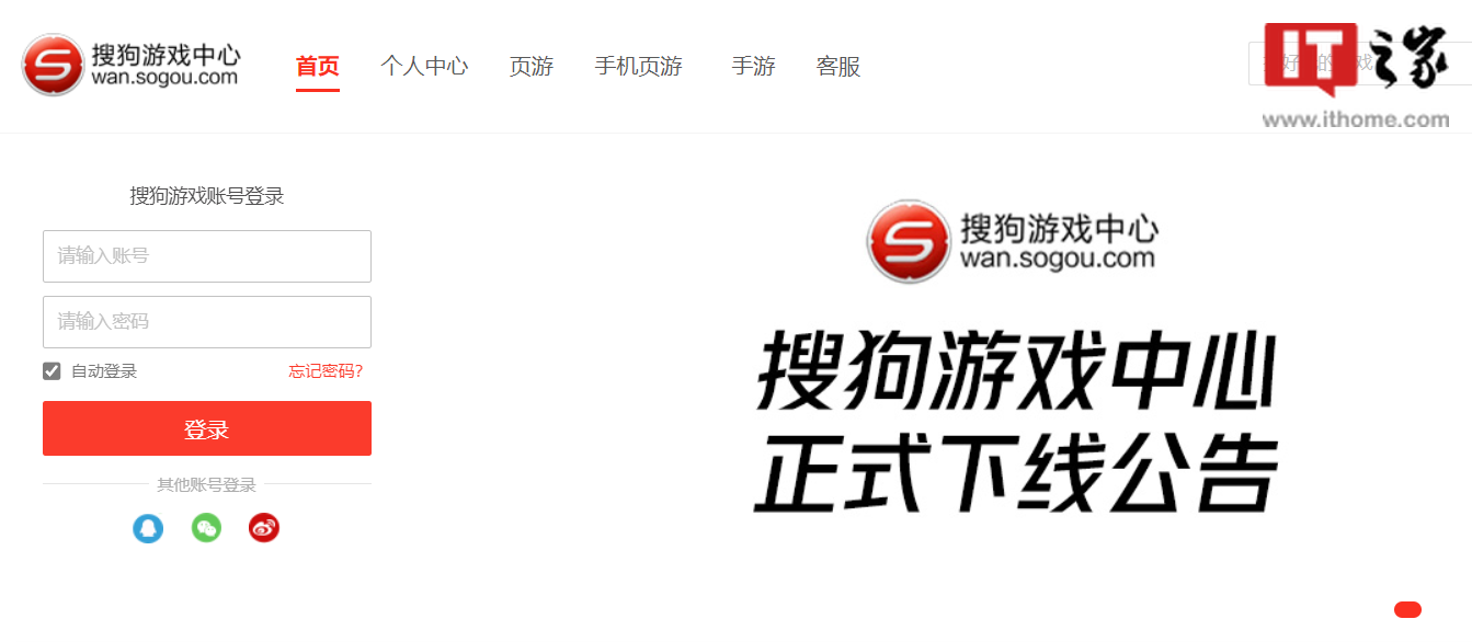 IT之家 8 月 19 日消息,8 月 16 日,搜狗游戏中心宣布正式下线,由于公司业务调整,搜狗游戏中心将正式停止服务与运营。