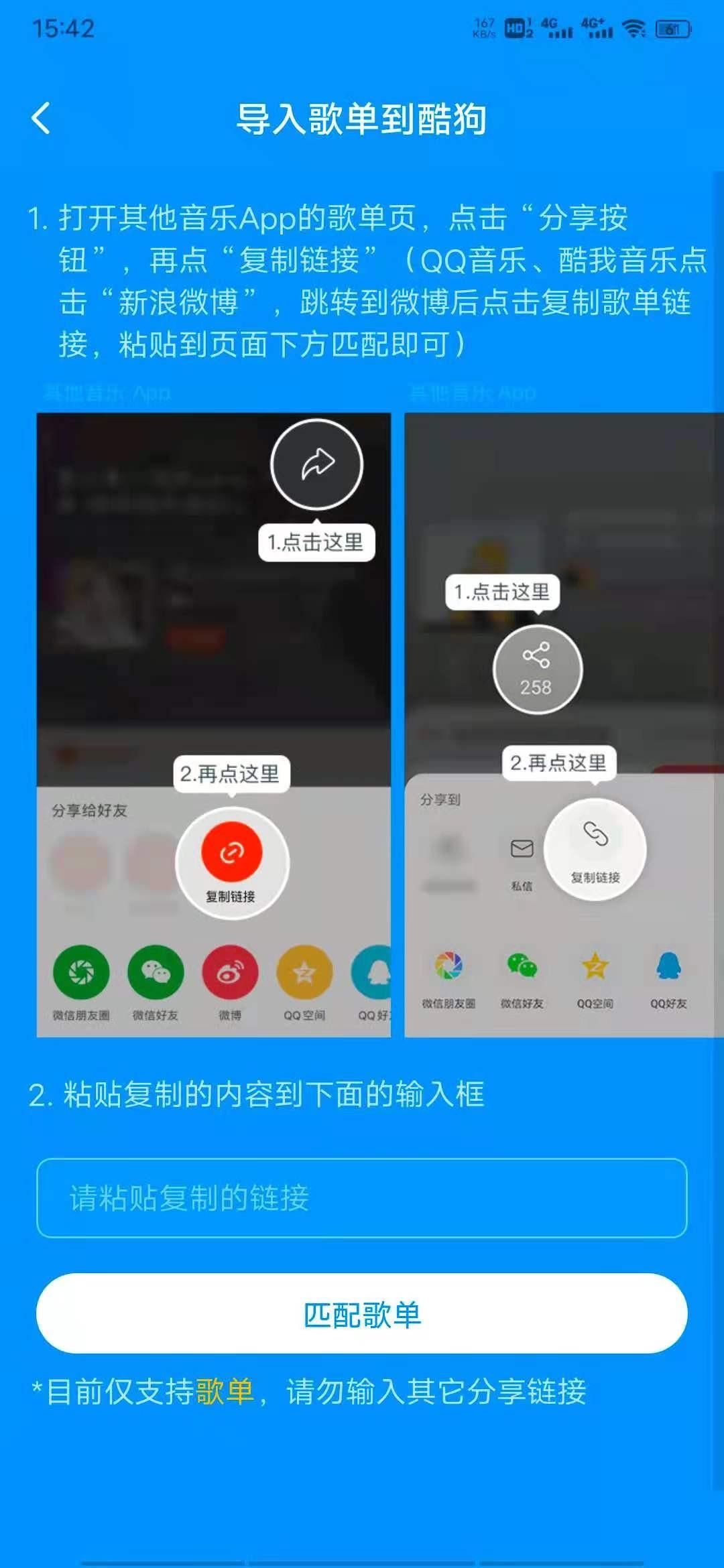 同时软件支持导入其它APP的歌单