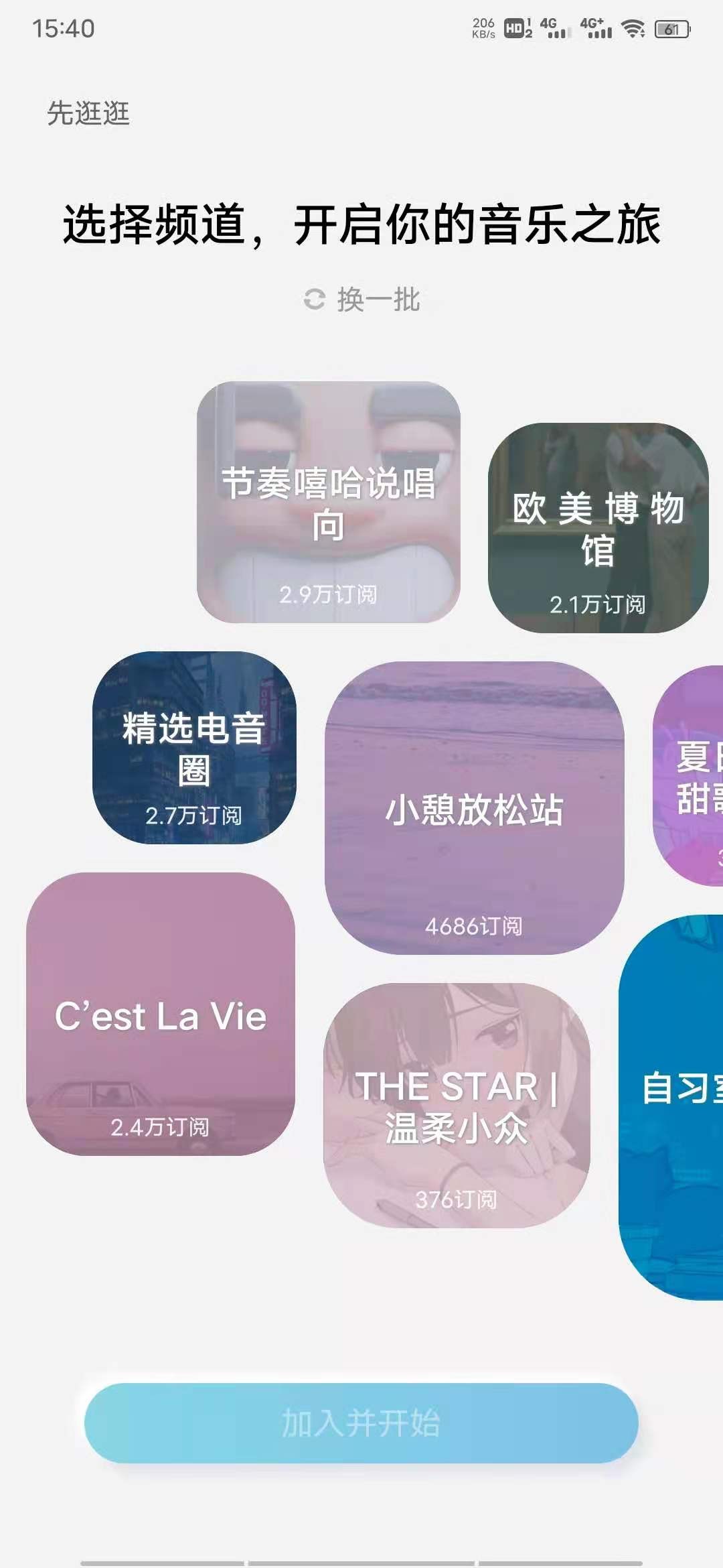 当我们下载好软件,需要选择你所喜欢的专题,并且可以登录自己的酷狗账号。软件的界面特别的简洁,只有发现和我的两个专栏,没有广告等其它杂七杂八的东西。并且和老版酷狗共享同一个音乐库,拥有超多类型的音乐资源