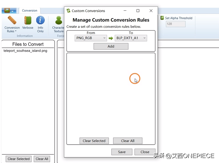 我们自己创建的图或做的图片都是png格式得,那么就需要用到工具把png文件转换为blp格式,这边直接用blp转换工具打开后将需要转换的png文件选取